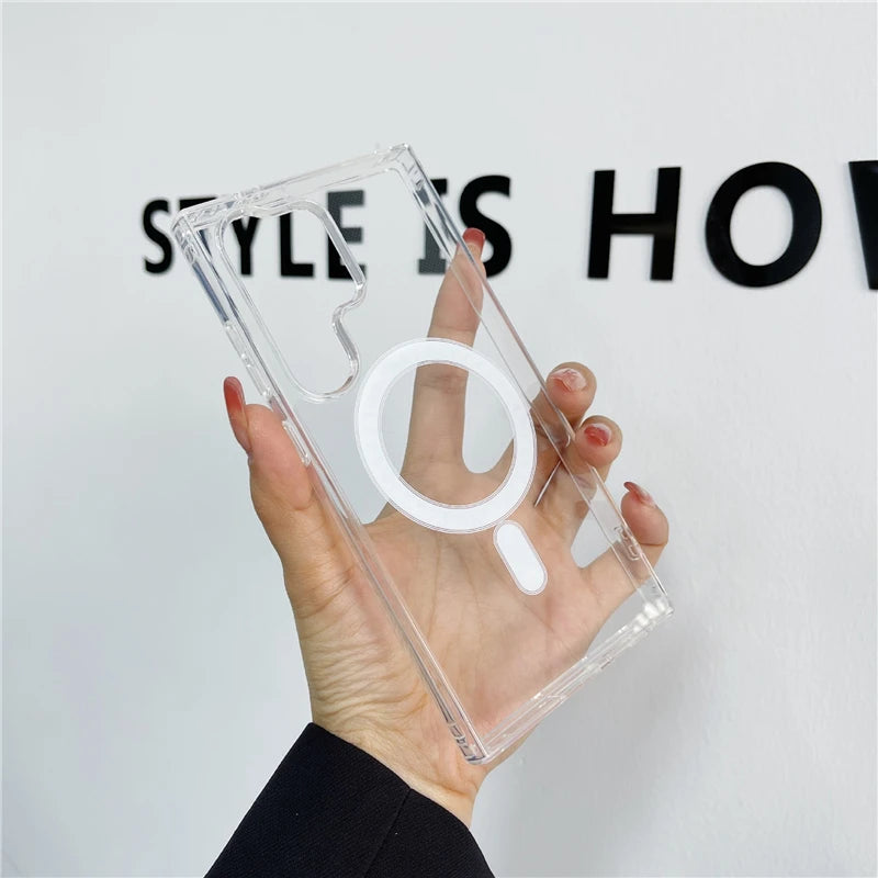 Original For Magsafe Magnetic Case for Samsung Galaxy S25 S24 S21 FE S22 Plus S23 Ultra Plus Wireless Charging Shockproof Cover